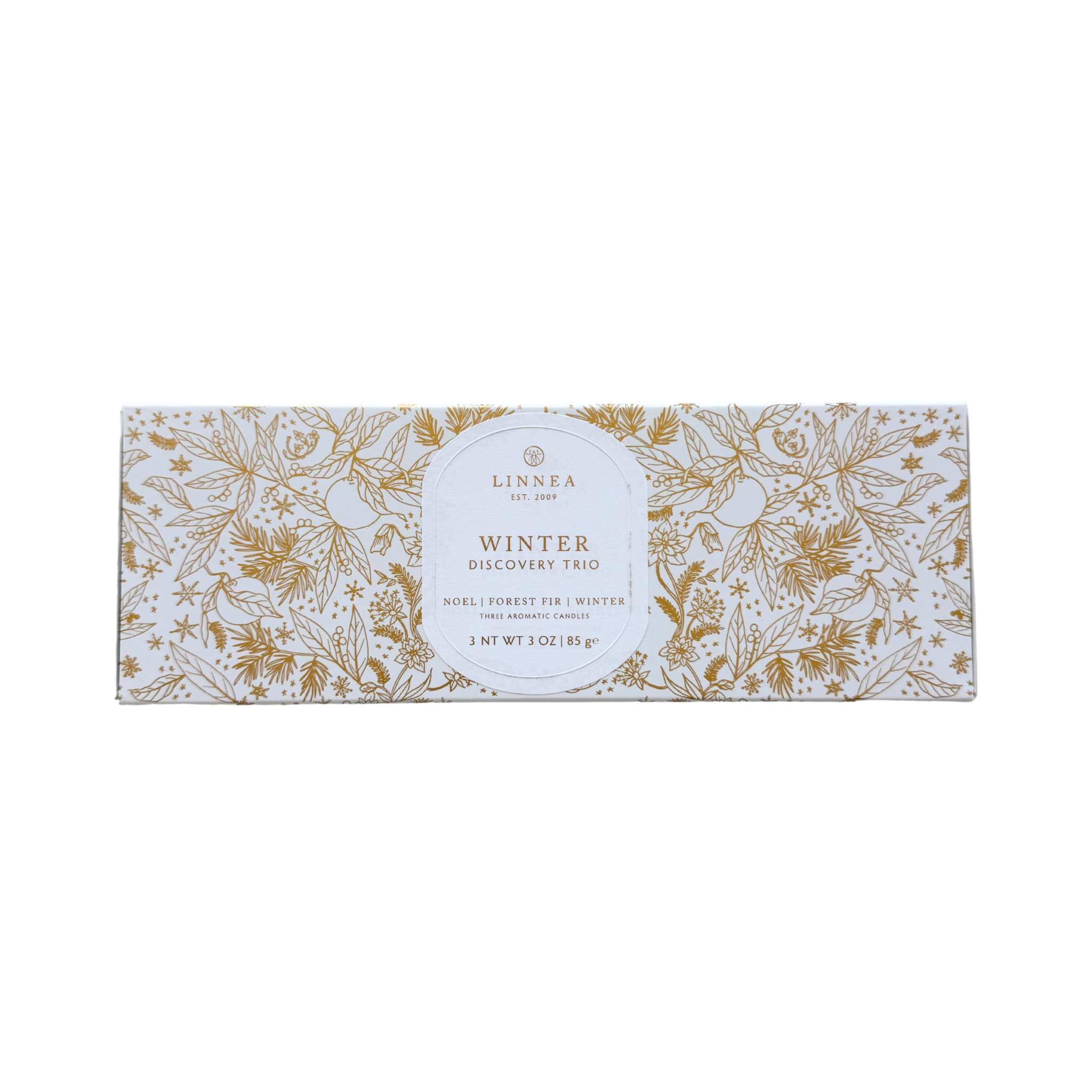 Experience our coveted Winter collection favorites, all at once.  The Discovery trio is a perfect way to create a symphony of scents.  Includes 3 petite candles for your sensorial pleasure: Noel, Forest Fir, Winter.