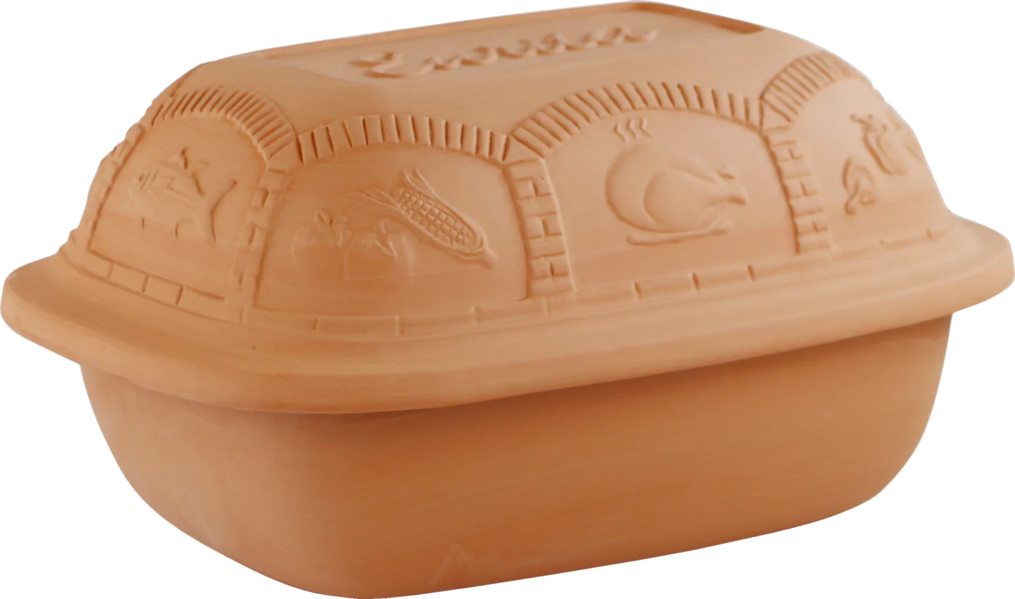 Reston Lloyd is pleased to launch their new line of Eurita clay pot cookers. The Eurita brand celebrates the company founder; Rita Bolle, who founded Reston Lloyd five decades ago. Reston Lloyd’s first clay pot cooker was called Schlemmertopf and featured an appetizing brick oven motif. The new line features not only the brick oven design but comes in large useful sizes. The roaster comes with an unglazed lid that is soaked in water before use.