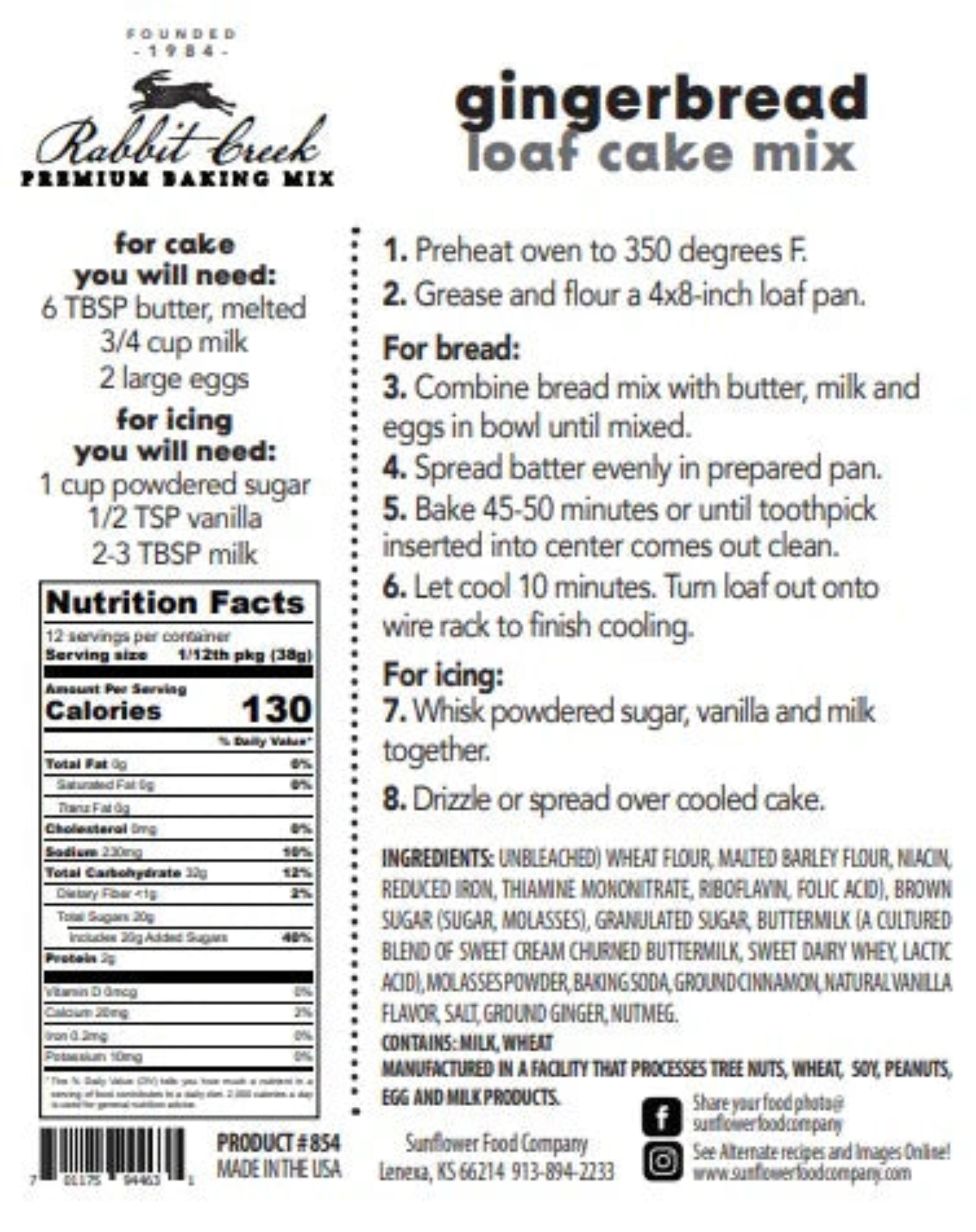 Embrace the festive season with this Gingerbread Quick Bread. It's simple and delicious, just add your ingredients, stir, and bake! This bread mix captures the essence of the holidays with its warm gingerbread flavor. Ideal for breakfast, dessert, or any time you crave a sweet, comforting bite.