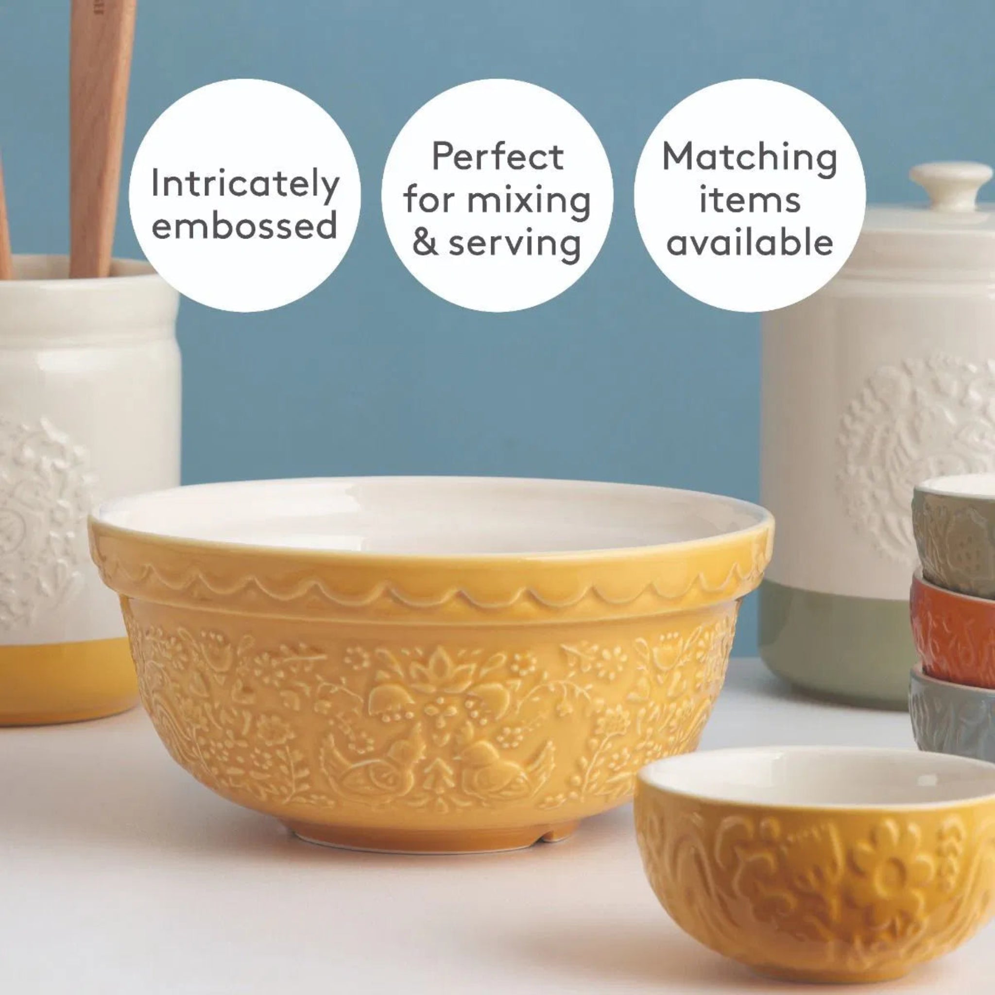 Mason Cash Home to Roost S30 Mixing Bowl (Buttercup) Features: