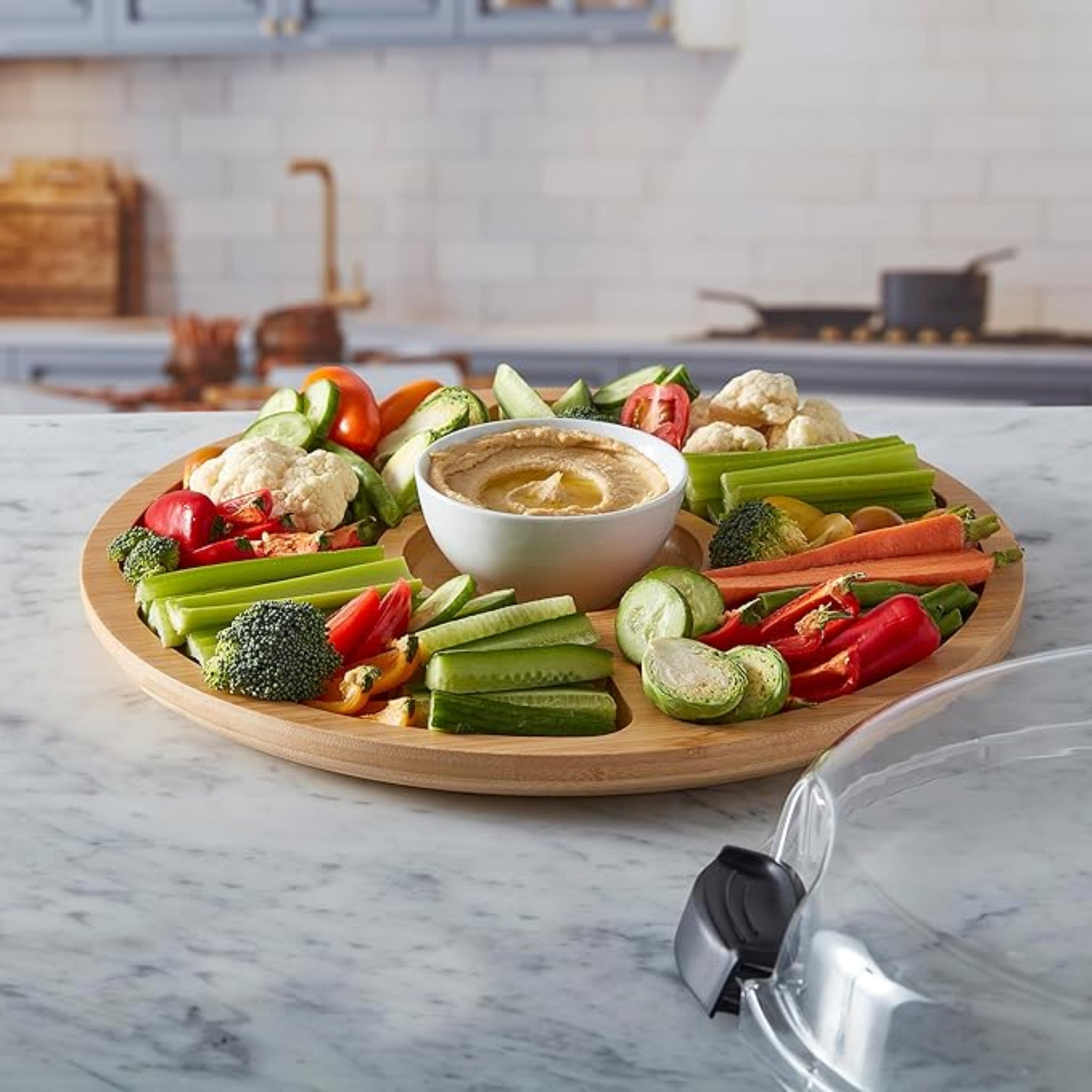 Craft stunning charcuterie arrangements using the built-in 5 compartments, perfect for arranging cheeses, fruits, nuts, or meats with exquisite precision.
