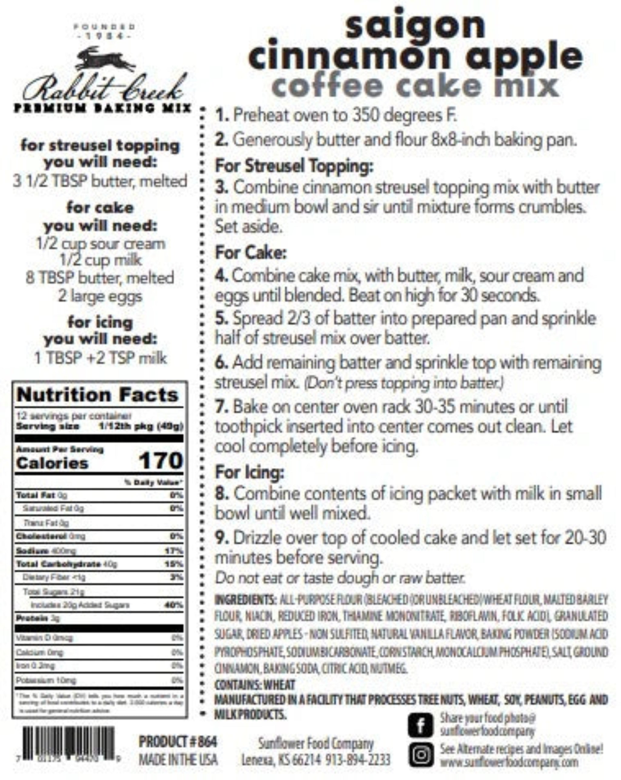 With its aromatic Saigon cinnamon and brown sugar crumble, this old-fashioned coffee cake is irresistible. The cinnamon sugar swirl delivers a rich, spicy flavor that complements the apples perfectly. For home bakers who want fresh, wholesome treats without spending all day in the kitchen, this mix is ideal. It's great for weekend breakfasts, neighborhood gatherings and holiday gifts.